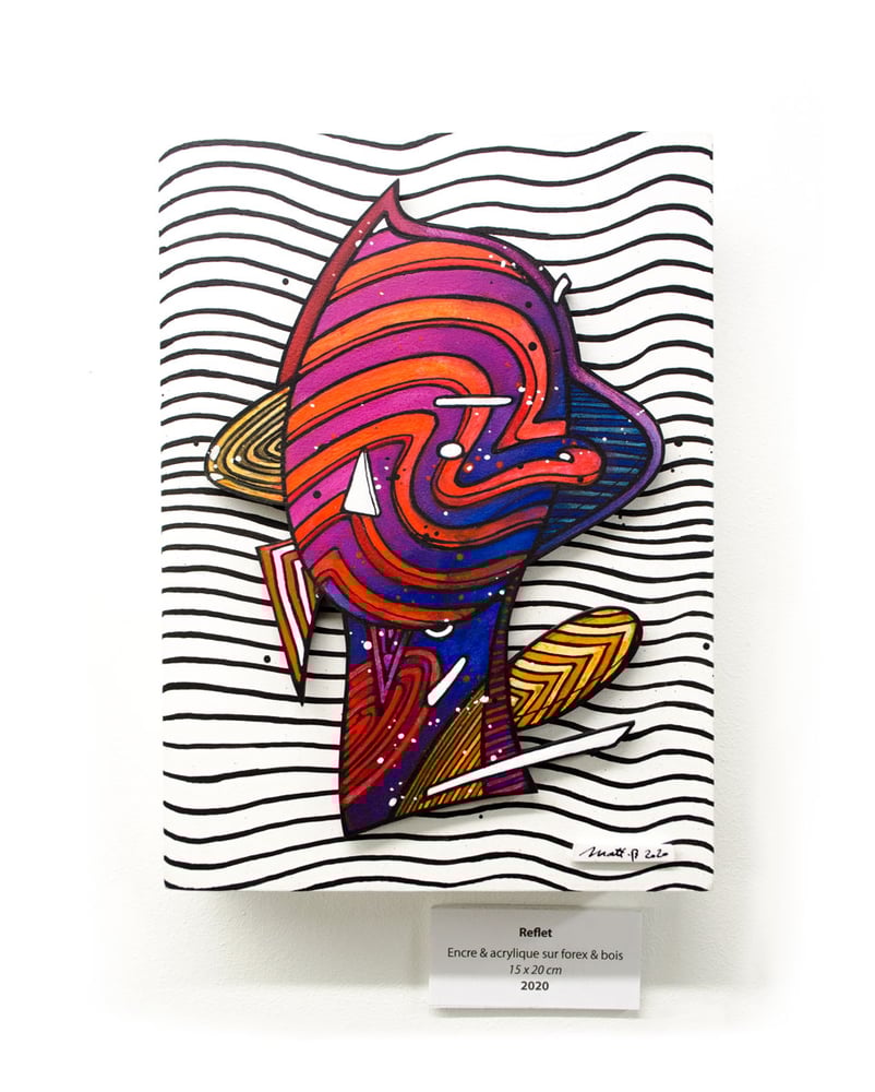 Encre & acrylique sur papier assemblé et contrecollé sur bois